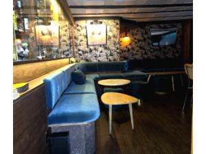 Consta de una barra de 2,5 metros equipada con 14 taburetes, botellería, máquina registradora TPV, lavavasos y contrabarra de 4m +15.