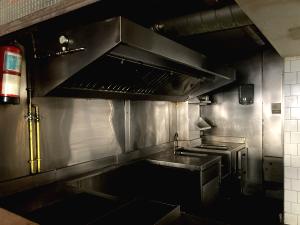 El local dispone 2 aseos adaptados en plata calle y 1 aseo en planta superior, almacén y taquillas para personal. Además, un montacargas que va de una cocina a la otra.
