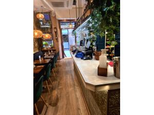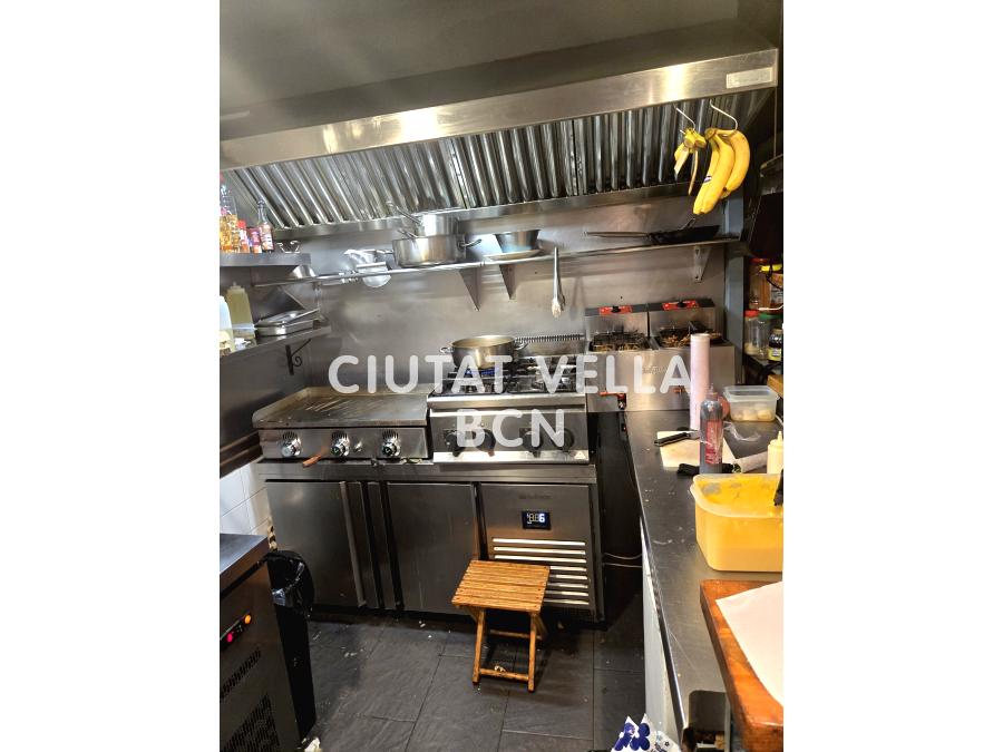 Consta de una barra de 6 metros y 5 taburetes equipada con 2 botellería, máquina registradora TPV, cafetera y lavavasos. Cocina vista completamente equipada con salida de humos, congelador, 4 nevera, plancha, freidora, horno/microondas, fogones a fuego con gas, pica, máquina de zumo y lavavajillas. El local cuenta con 3 aseos (uno adaptado y otro para empleados), esta insonorizado e ignifugado con aire acondicionado y un almacén.