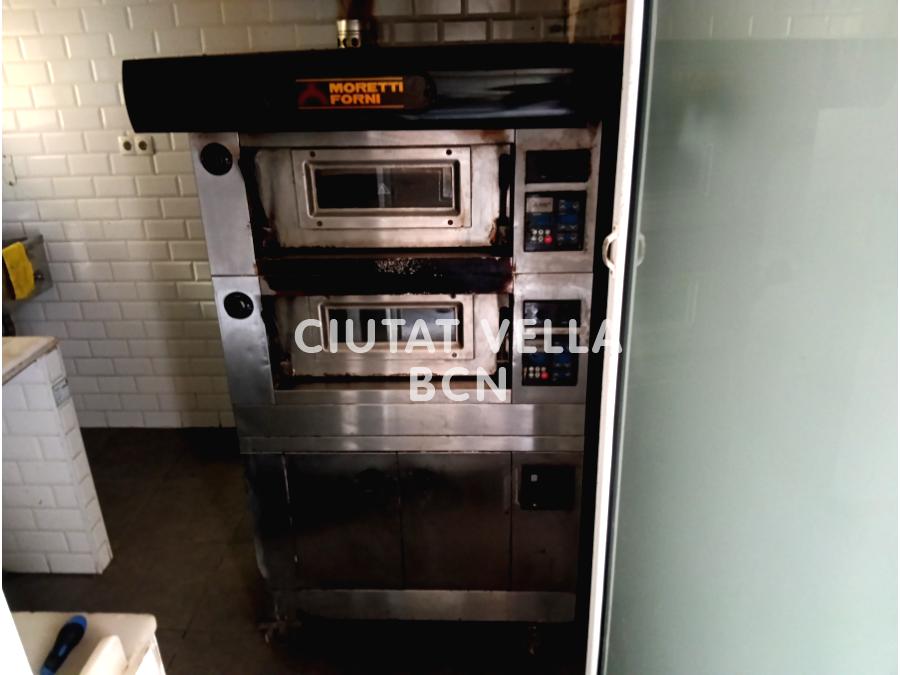 Ref. T-3118-01 Se traspasa local con licencia de A6.1 platos preparados con obrador, de 110m2 distribuidos en 1 planta + altillo, 1 entrada y fachada acristalada de 2.5metros. La cocina está equipada con salida de humos, horno a leña, 1 horno eléctrico 2 cuerpos, 1 horno pequeño 2 cuerpos, 5 neveras verticales, 2 congeladores y 1 amasadora trifásica. El local esta ignifugado e insonorizado, cuenta con baño y ducha para personal, 3 aseos, aire acondicionado y almacén.