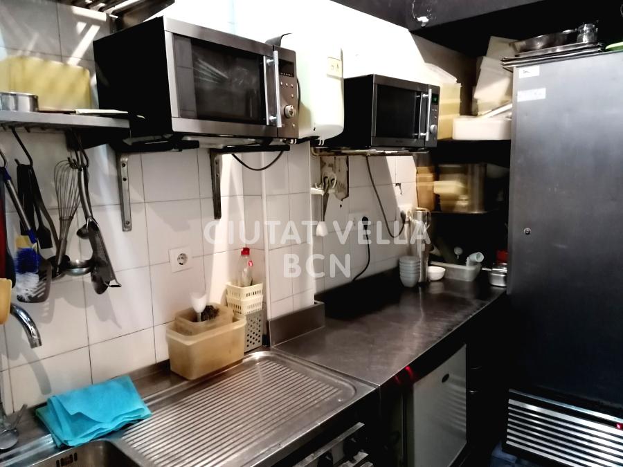 En venta bar restaurante con licencia C3, de 102 m2 distribuidos en una sola planta, ubicado en calle de paso del Raval a un paso de metro San Antoni. El local está reformado y tiene cocina acondicionada con salida de humos, neveras, lavavajillas, congelador, horno y office. tiene aforo para 48 comensales con 24 mesas; dispone de 2 aseos, tv y aire acondicionado.