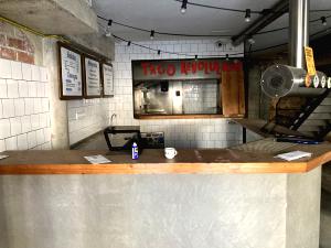 En planta calle, cuenta con una barra de 6 metros, sala para comensales y una cocina vista con salida de humos.