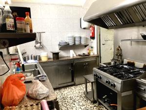 La cocina de 12m² se encuentra acondicionada con salida de humos, 3 neveras combi, 3 congeladores grandes, 1 horno eléctrico, 3 microondas, 2 planchas de gas, 1 freidora eléctrica, 4 fogones y lavavajillas.