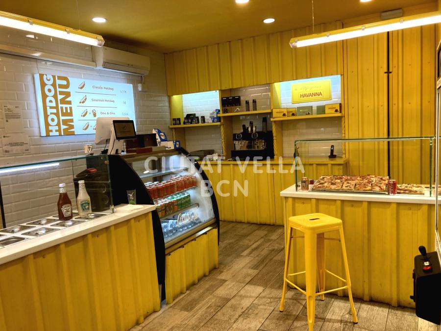 PASTELERIA, REPOSTERIA Y DESPACHO DE PAN CON TERMINAL DE COCCION en una de las calles peatonales de mucho paso de gente en el BORN. El local de 160 m2, totalmente insonorizado, ignifugado, actualmente en funcionamiento; en la zona de la entrada encontramos vitrinas expositoras, una barra acondicionada con máquina registradora y botelleria; excelente obrador de 20 metros, nevera, congelador y horno ;1 baño y aire acondicionado ; incluye también el parking. También dispone de un piso con acceso independiente encima del local.