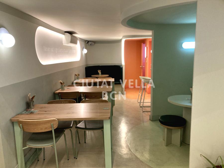 Bar Restaurante con licencia C3, cerca del Mercado de Santa Caterina. Local de 120m², distribuidos en 2 plantas, con un aforo de 38 comensales, a confirmar, y fachada acristaladas de 3 metros.